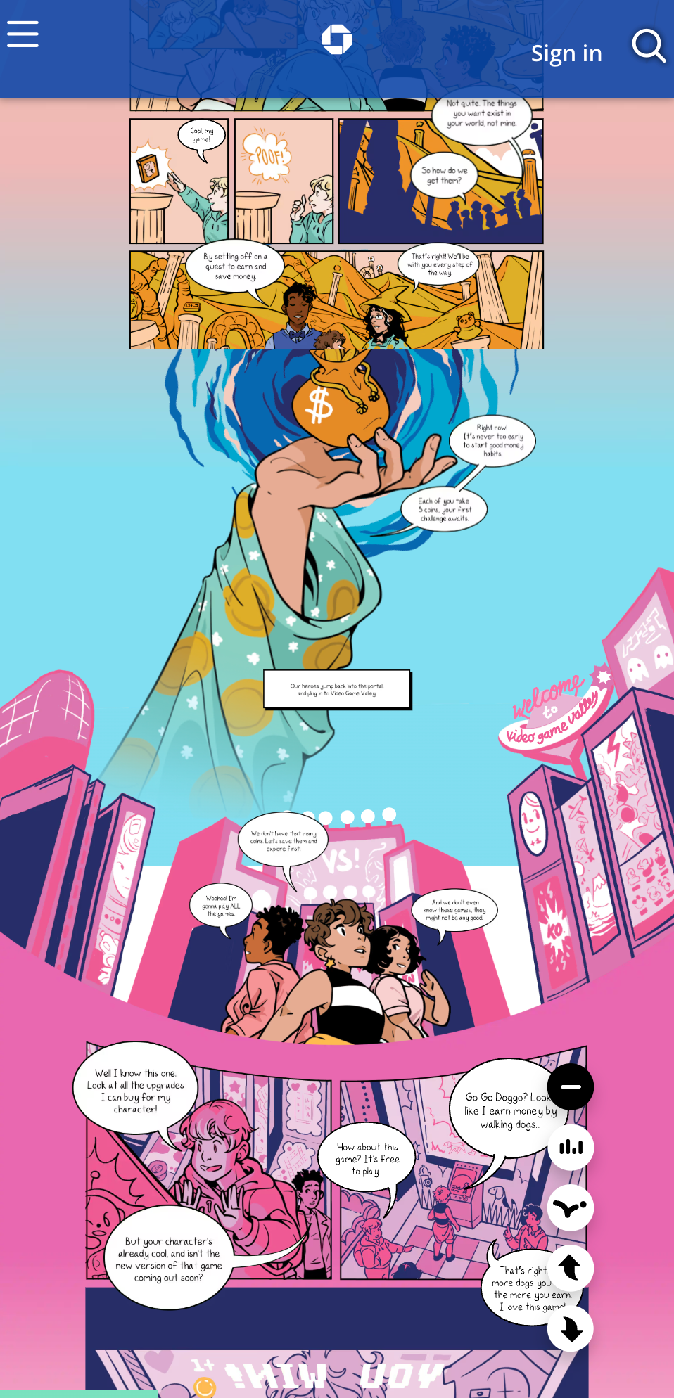 An interactive financial-literacy graphic novel commissioned by JPMorgan Chase to engage children and families through animation and audio storytelling.